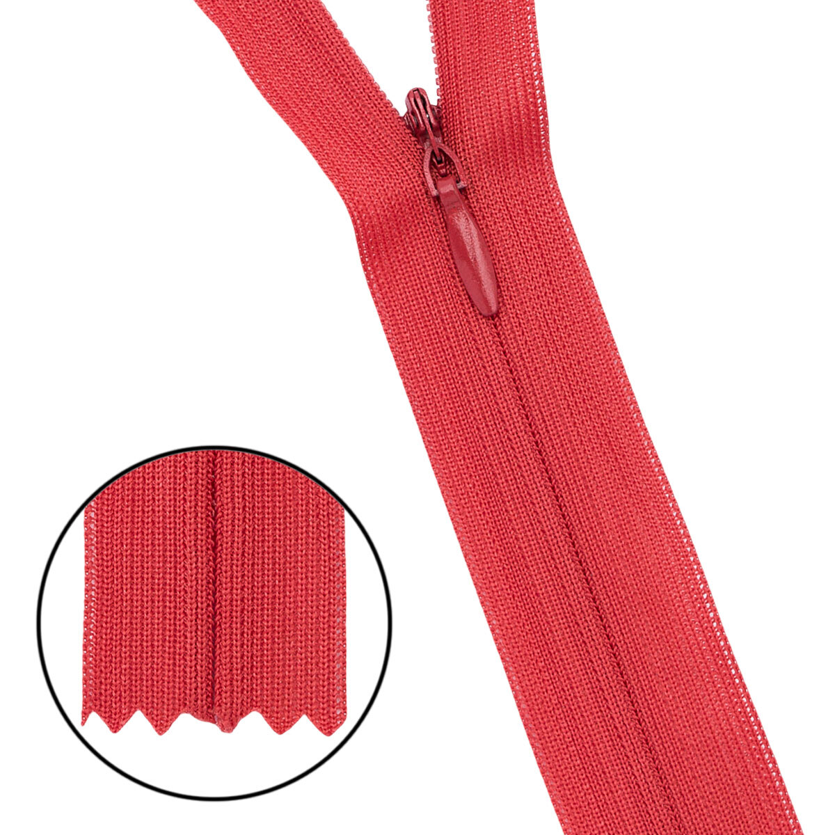 Молния потайная (скрытая) Т3 (3 мм) 1 зам., н/раз., 50 см, нейлон, F159 красный, 10 шт