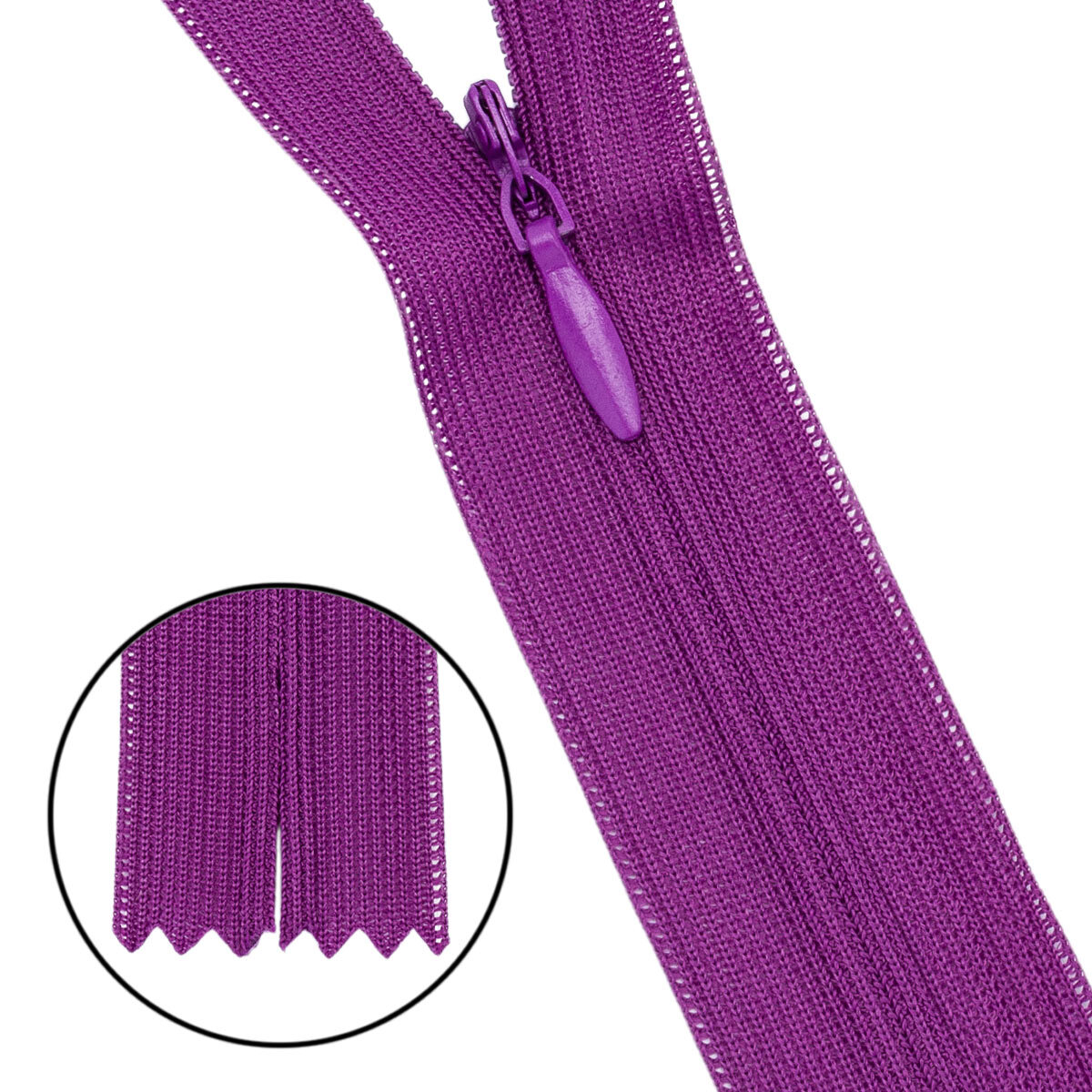 Молния потайная (скрытая) Т3 (3 мм) 1 зам., н/раз., 50 см, нейлон, F175 фиолетовый, 10 шт
