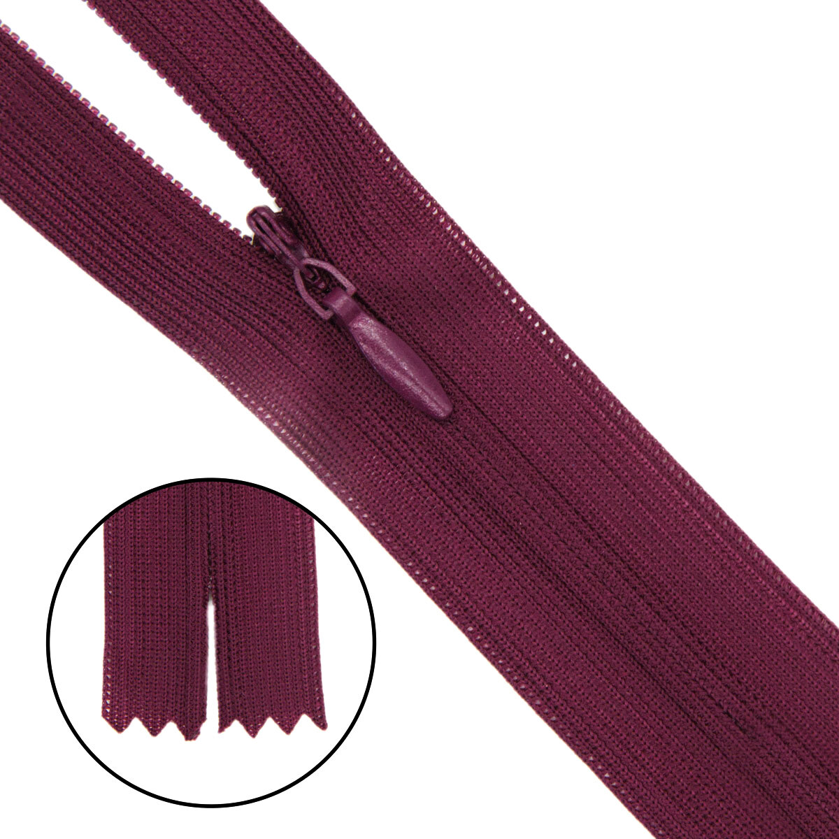 Молния потайная (скрытая) Т3 (3 мм) 1 зам., н/раз., 50 см, нейлон, F179 т.бордовый, 10 шт