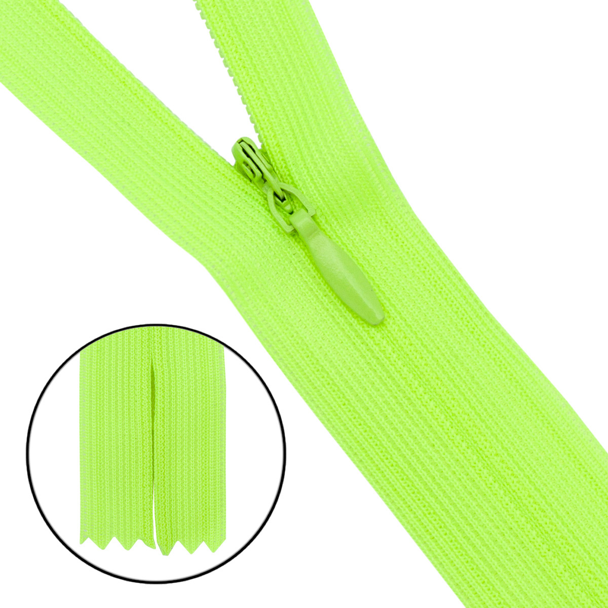 Молния потайная (скрытая) Т3 (3 мм) 1 зам., н/раз., 50 см, нейлон, F229 ярк.салатовый, 10 шт