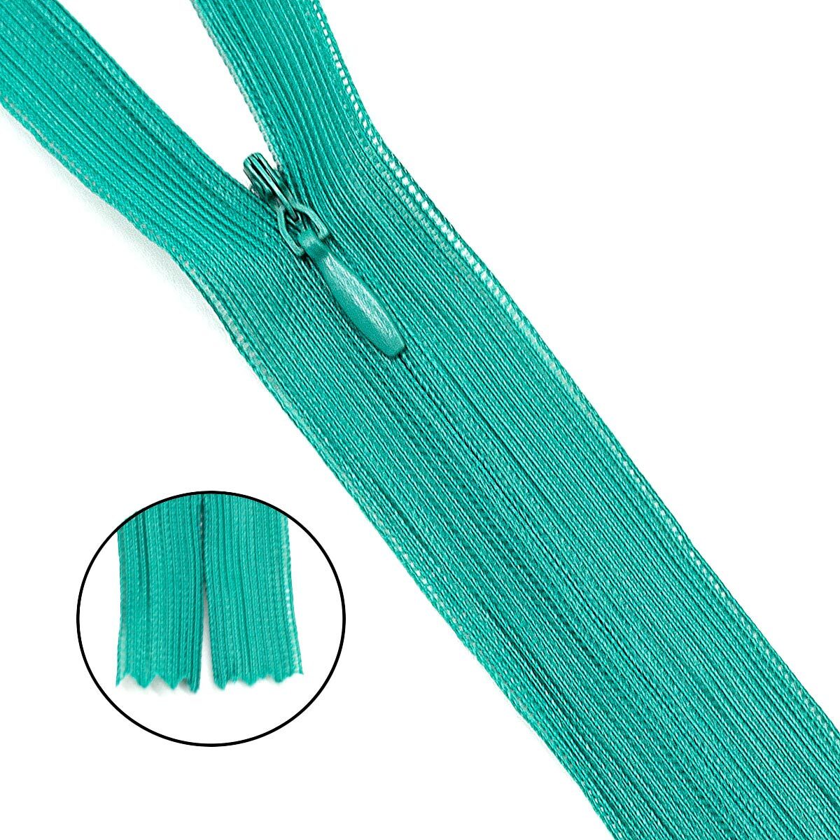 Молния потайная (скрытая) Т3 (3 мм) 1 зам., н/раз., 50 см, нейлон, F236 зелёный, 10 шт