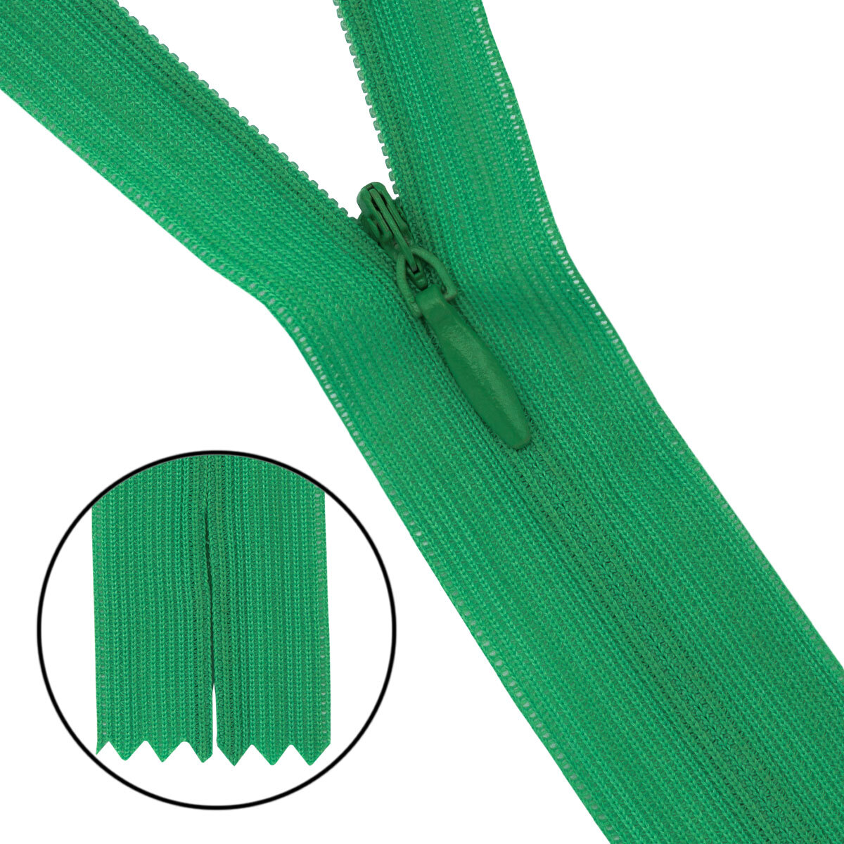 Молния потайная (скрытая) Т3 (3 мм) 1 зам., н/раз., 50 см, нейлон, F243 зеленый, 10 шт