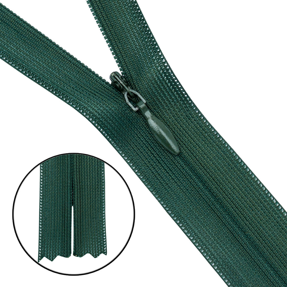 Молния потайная (скрытая) Т3 (3 мм) 1 зам., н/раз., 50 см, нейлон, F273 т.зеленый, 10 шт