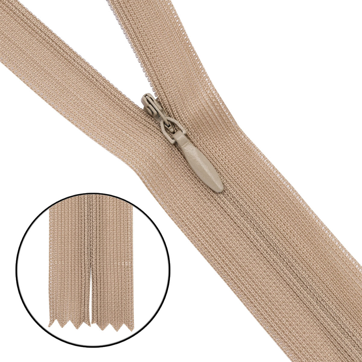 Молния потайная (скрытая) Т3 (3 мм) 1 зам., н/раз., 50 см, нейлон, F308 бежевый, 10 шт