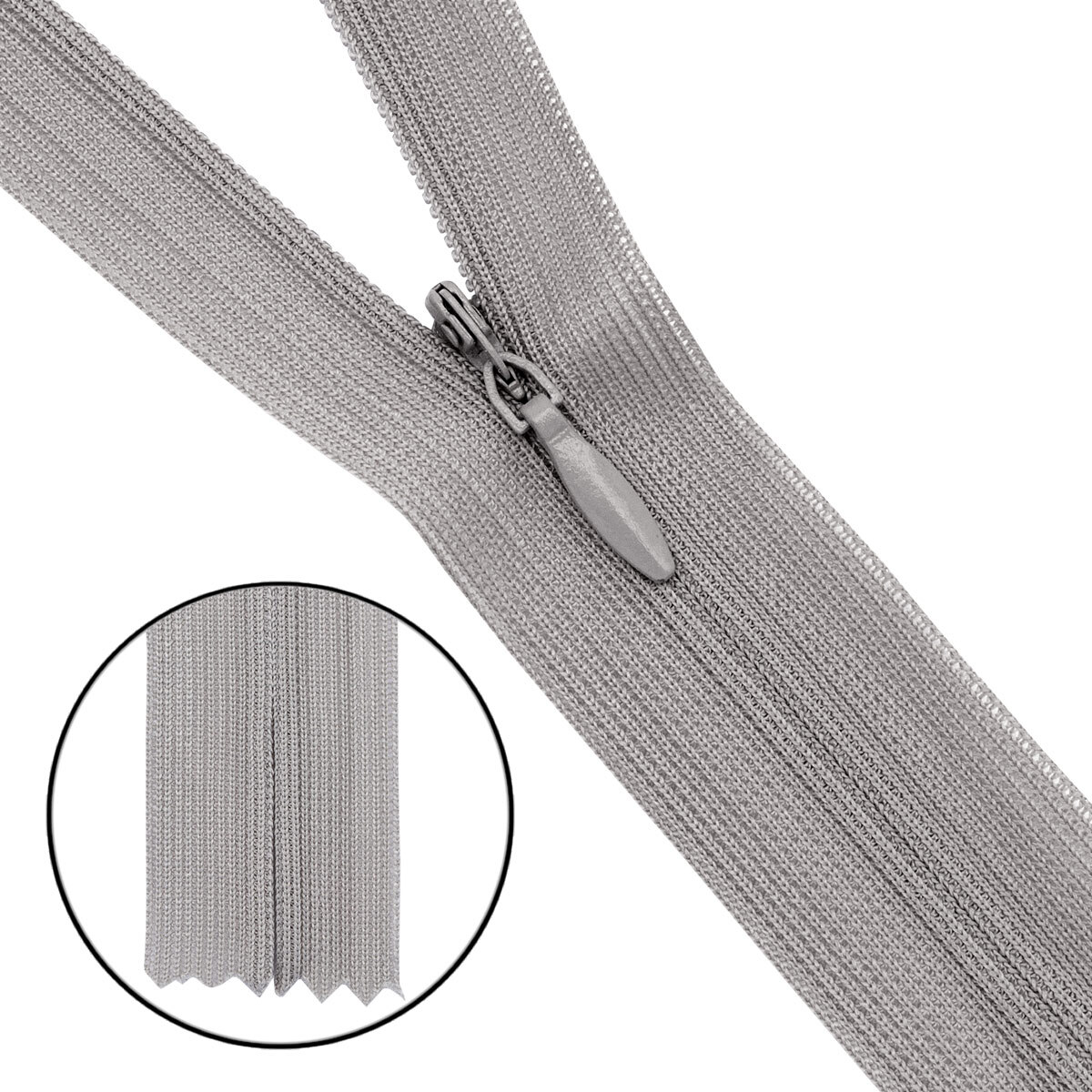 Молния потайная (скрытая) Т3 (3 мм) 1 зам., н/раз., 50 см, нейлон, F310 св.серый, 10 шт