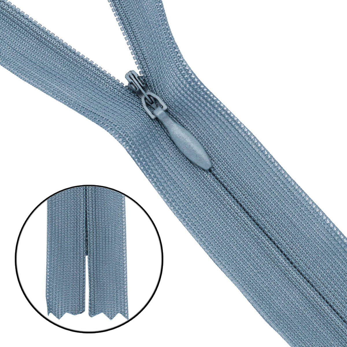 Молния витая потайная имеет особое строение. Её звенья расположены на изнаночной стороне застежки и прикрыты текстильной лентой. С лицевой стороны находится только бегунок, поэтому такая молния на готовом изделии почти незаметна. Потайные молнии используют при изготовлении одежды для взрослых и детей: юбок, блузок, платьев, трикотажных изделий, а также постельного белья, предметов домашнего обихода, разнообразных аксессуаров. Молния выполнена из материалов высокого качества. Текстильная лента из полиэстера не линяет при стирке и химической чистке. Звенья изготовлены нейлона, размер 3 мм, молния плотно смыкается, имеет небольшой вес, подходит для легких тканей. Изящный металлический слайдер свободно скользит по тесьме.