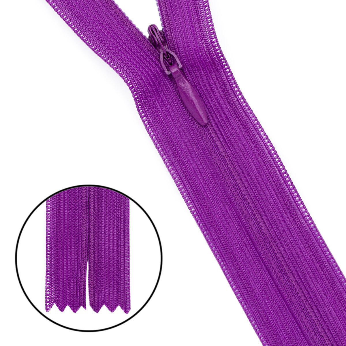 Молния потайная (скрытая) Т3 (3 мм) 1 зам., н/раз., 50 см, нейлон, F339 т.сиреневый, 10 шт