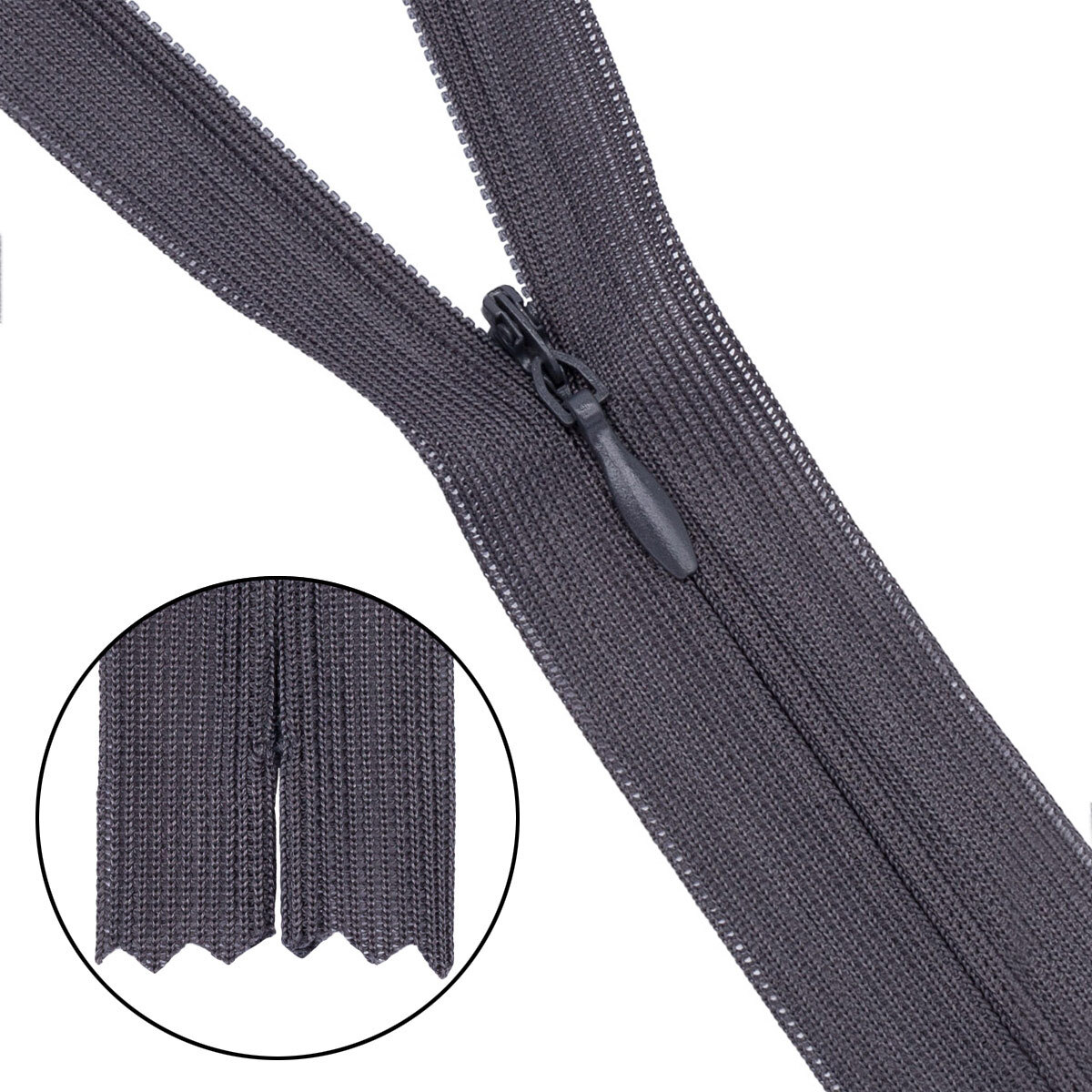 Молния потайная (скрытая) Т3 (3 мм) 1 зам., н/раз., 70 см, нейлон, 301 т.серый, 10 шт