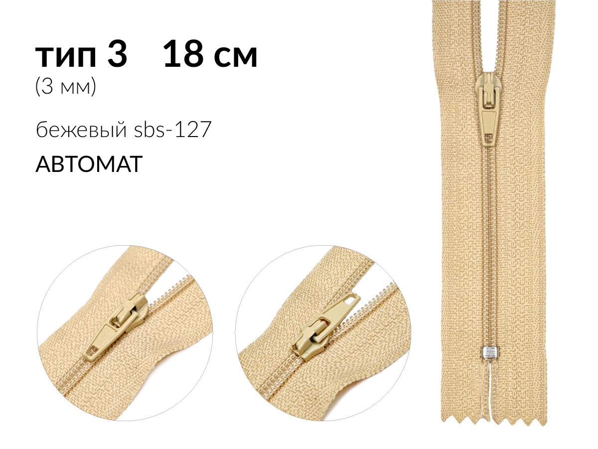 Молния спираль (витая) (цв.SBS) брючная Т3 (3 мм) 1 зам., н/раз., 18 см, автомат, S-127 бежевый, уп.5000 шт
