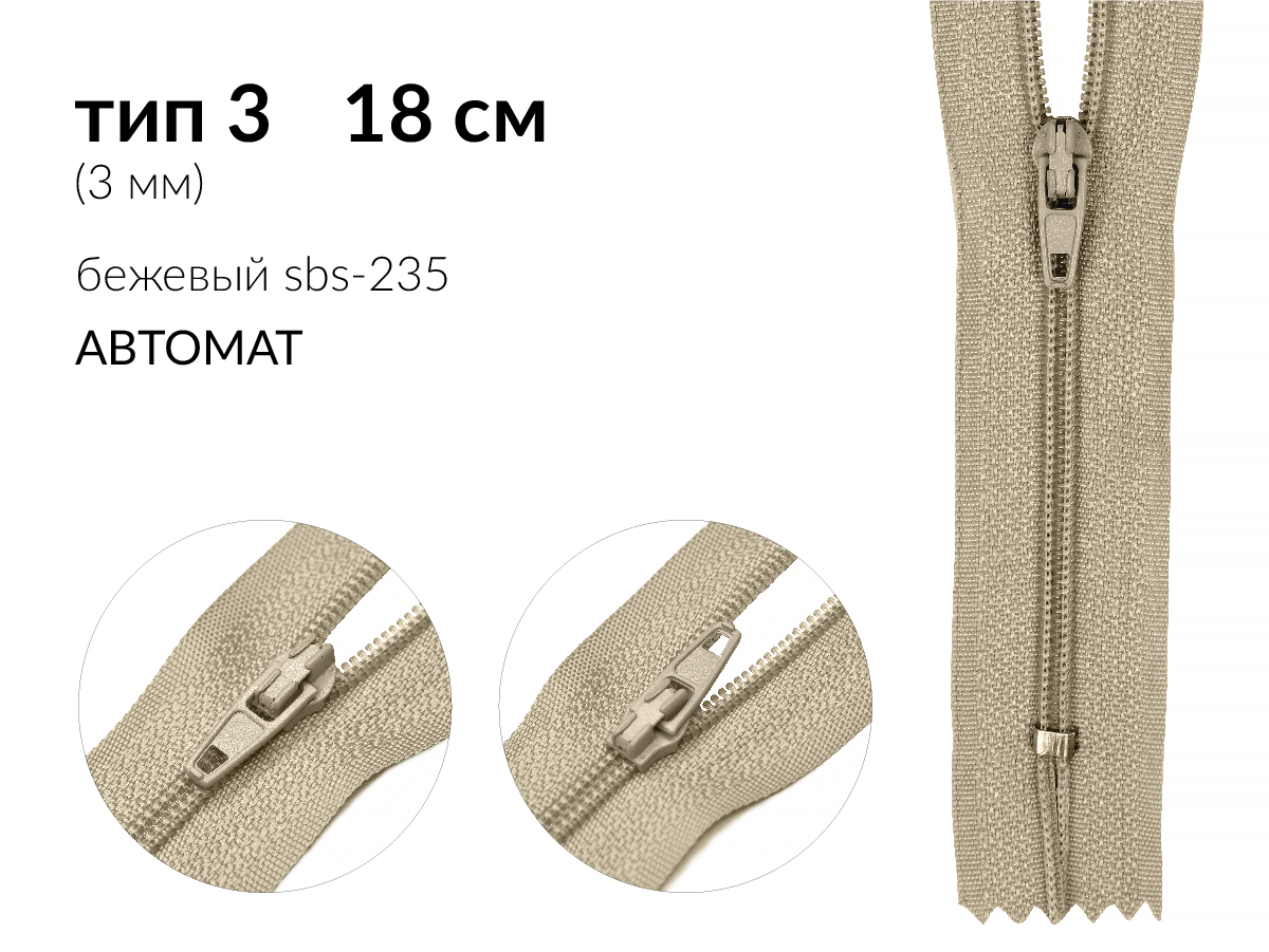 Молния спираль (витая) (цв.SBS) брючная Т3 (3 мм) 1 зам., н/раз., 18 см, автомат, S-235 бежевый, уп.5000 шт