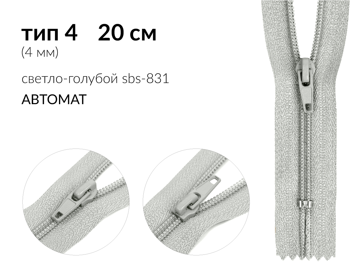 Молния спираль (витая) (цв.SBS) брючная Т4 (4 мм) 1 зам., н/раз., 20 см, автомат, S-831 св.голубой, 2500 шт