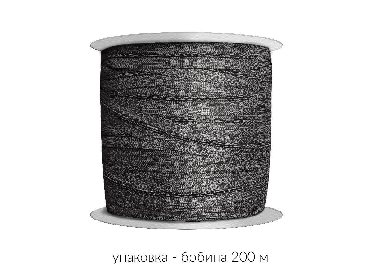 Молния рулонная витая (спираль) Т3 (3 мм) УСИЛЕННАЯ, НА БОБИНЕ, S-306 серый (цв.SBS) / кор. 1200 метров