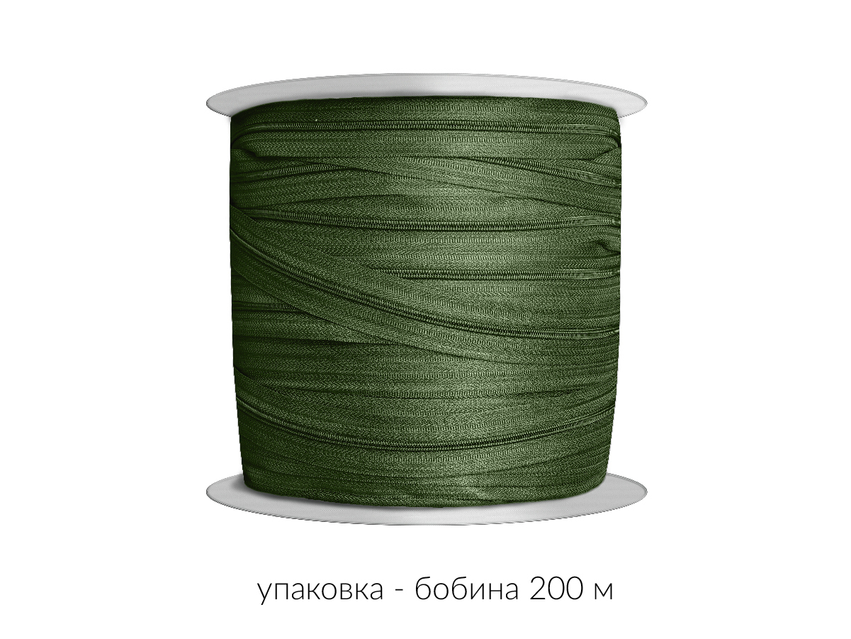 Молния рулонная витая (спираль) Т3 (3 мм) УСИЛЕННАЯ, НА БОБИНЕ, S-879 хаки (цв.SBS) / кор. 1200 метров