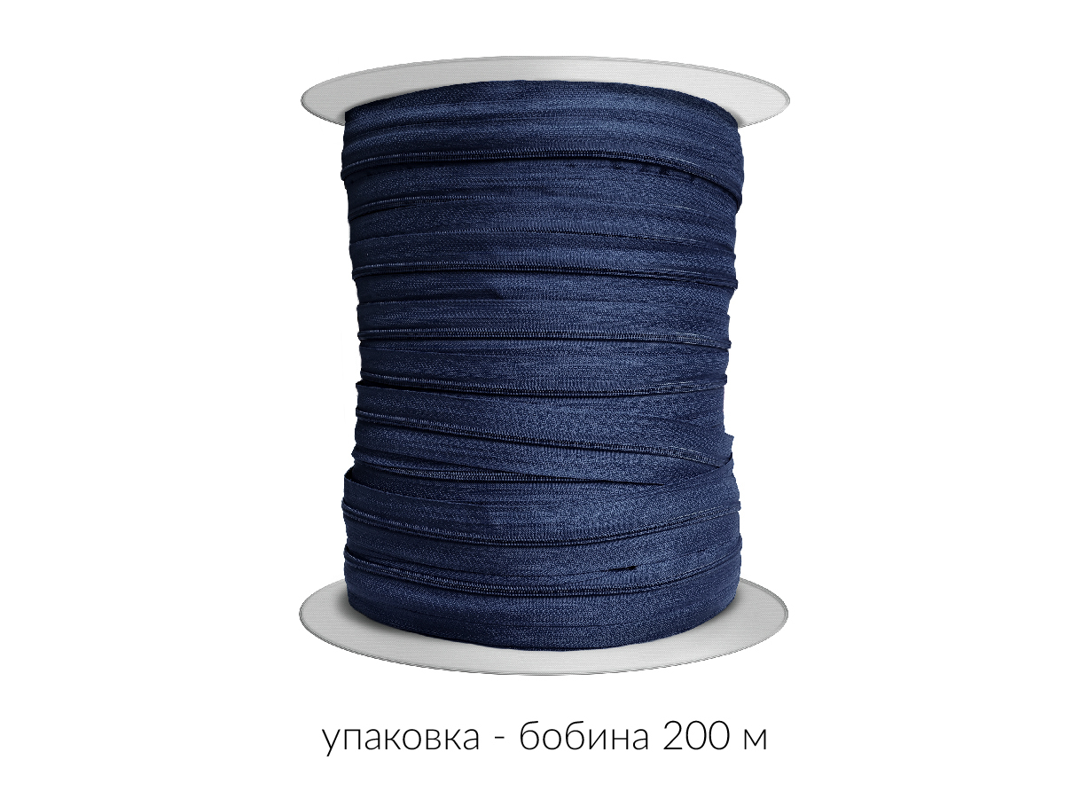 Молния рулонная витая (спираль) Т3 (3 мм) УСИЛЕННАЯ, НА БОБИНЕ, S-919 синий (цв.SBS) / 200 метров