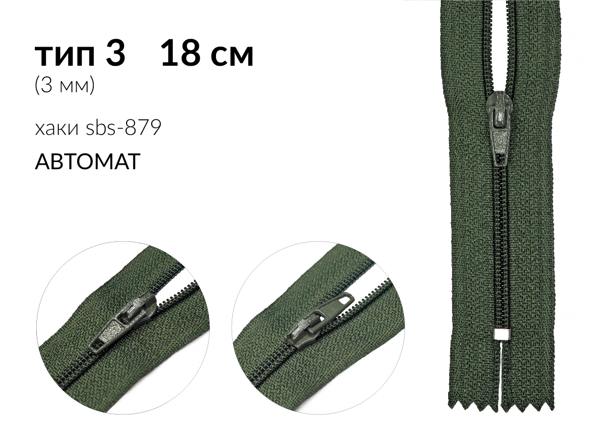 Молния спираль (витая) (цв.SBS) брючная Т3 (3 мм) 1 зам., н/раз., 18 см, автомат, S-879 хаки, 5000 шт