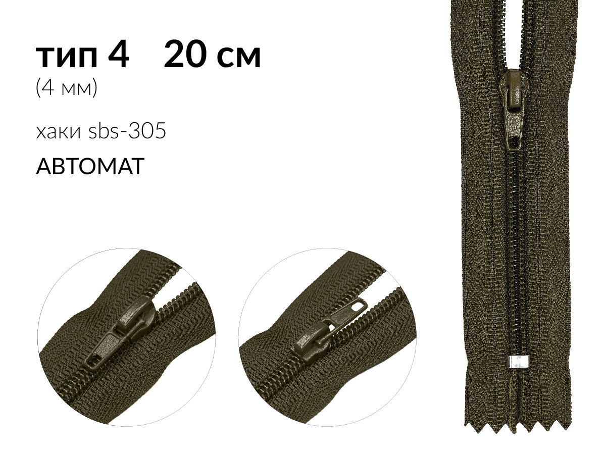 Молния спираль (витая) (цв.SBS) брючная Т4 (4 мм) 1 зам., н/раз., 20 см, автомат, S-305 хаки, 2500 шт