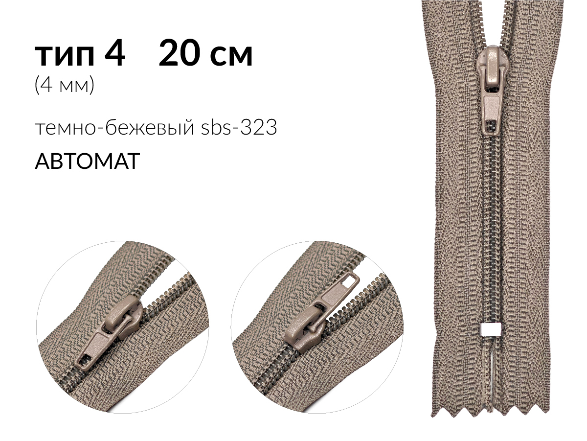 Молния спираль (витая) (цв.SBS) брючная Т4 (4 мм) 1 зам., н/раз., 20 см, автомат, S-323 т.бежевый, 2500 шт