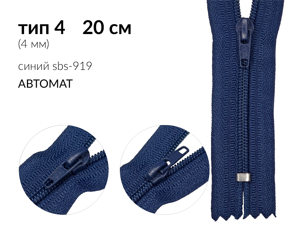 Молния спираль (витая) (цв.SBS) брючная Т4 (4 мм) 1 зам., н/раз., 20 см, автомат, S-919 т.синий, 2500 шт