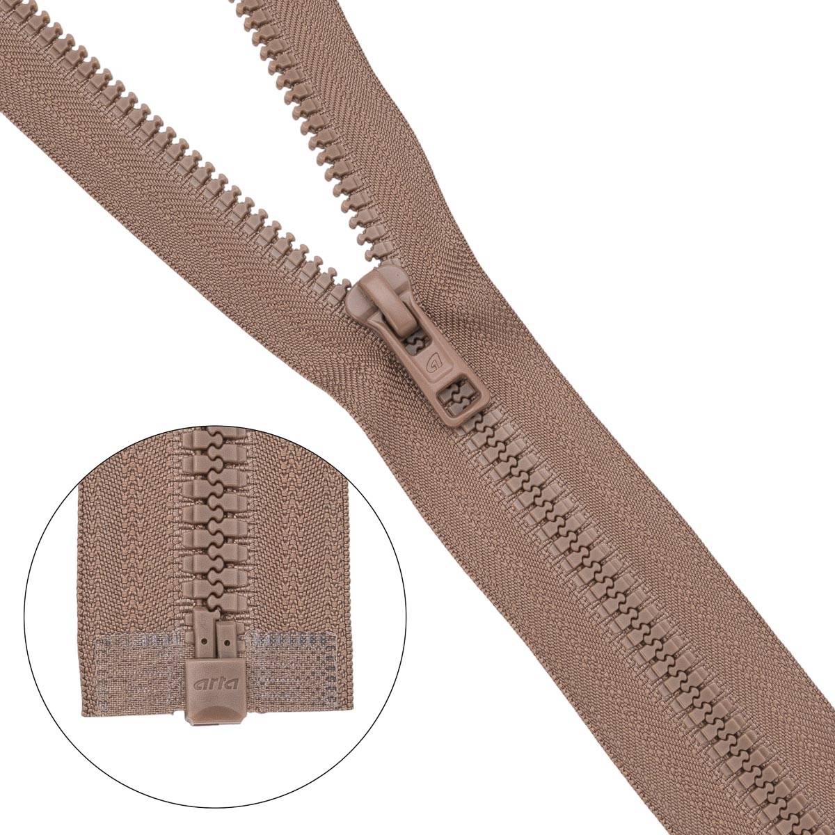 Молния трактор Arta Т6 (6 мм) 1 зам., разъем., 40 см, (2076), A008 т.бежевый, НОВЫЙ МАТОВЫЙ ЗАМОК, уп.5 штук