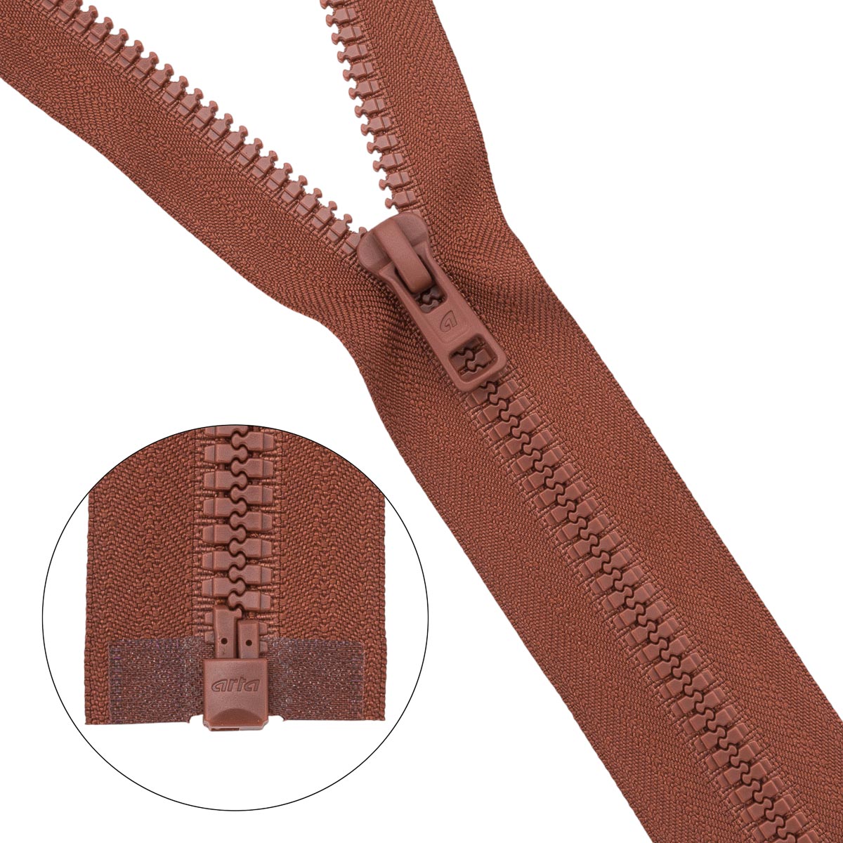 Молния трактор Arta Т6 (6 мм) 1 зам., разъем., 40 см, (2076), A236 терракотовый, НОВЫЙ МАТОВЫЙ ЗАМОК, уп.5 штук