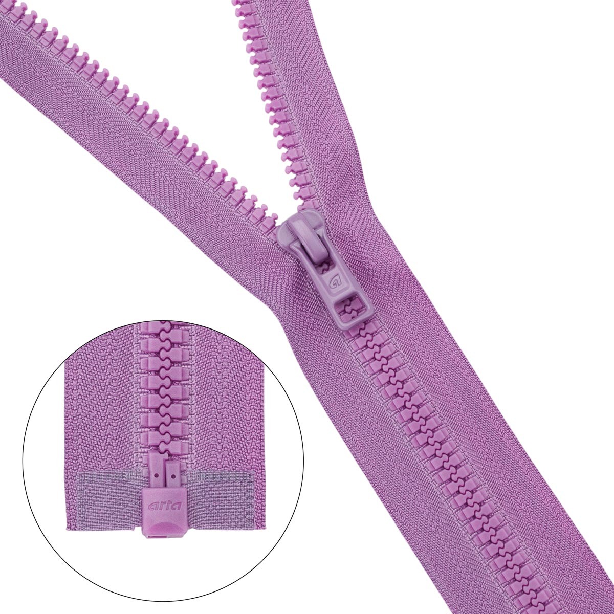 Молния трактор Arta Т6 (6 мм) 1 зам., разъем., 70 см, (2076), A113 сиреневый, НОВЫЙ МАТОВЫЙ ЗАМОК, уп.5 штук