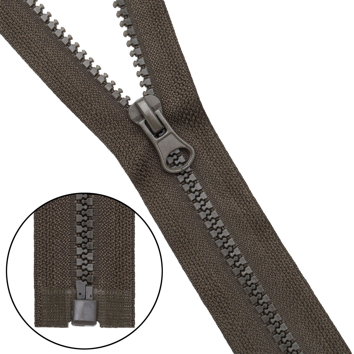 Молния трактор Т5 (5 мм) 1 зам., разъем., 75 см, 078 т.хаки, 10 шт