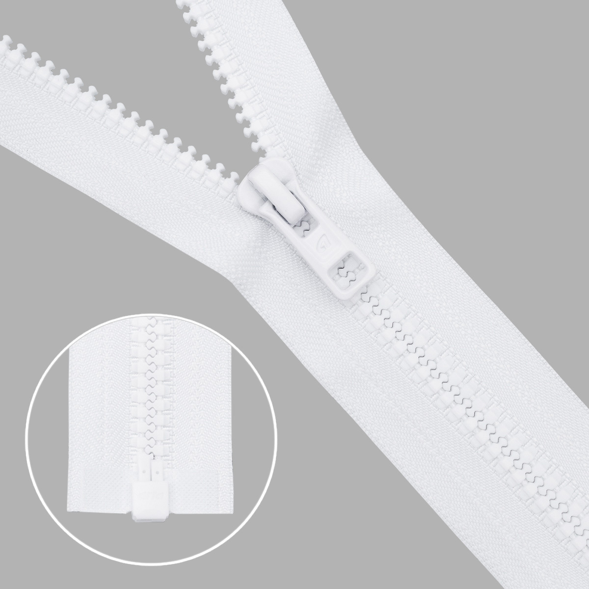 Молния трактор Arta Т6 (6 мм) 1 зам., разъем., 90 см, (2076), A501 белый, НОВЫЙ МАТОВЫЙ ЗАМОК, уп.5 штук