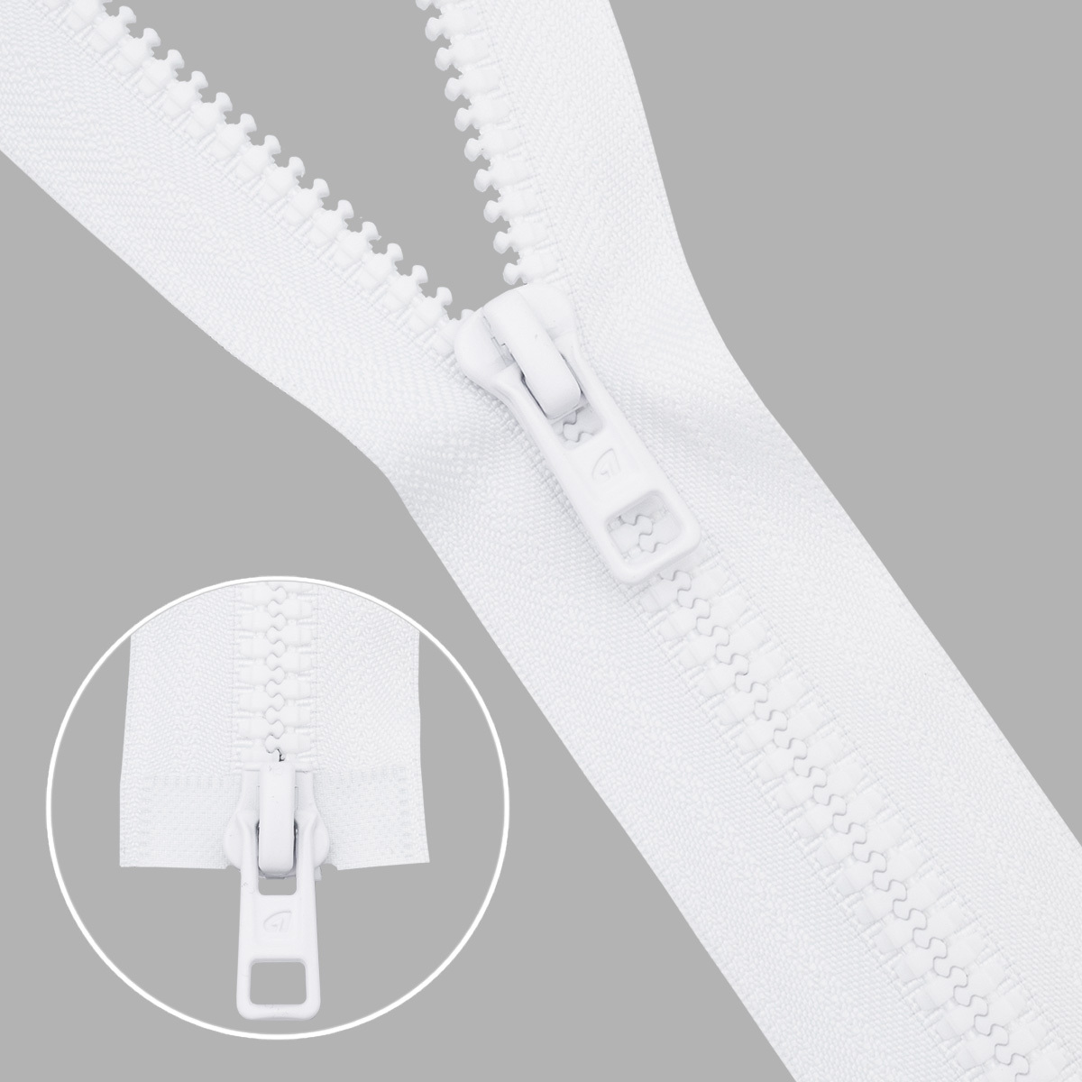 Молния трактор Arta Т6 (6 мм) 2 зам., разъем., 90 см, (2077), A501 белый, НОВЫЙ МАТОВЫЙ ЗАМОК, уп.50 штук