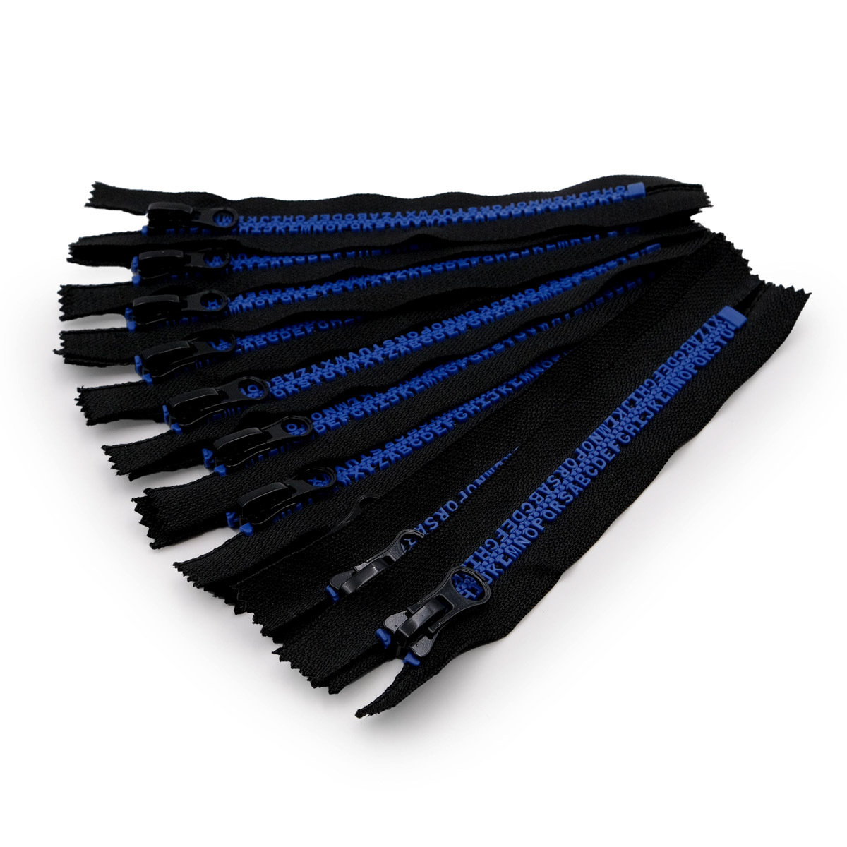 Молния трактор Т8 (8 мм) 1 зам., н/раз., 18 см, декор. звено Алфавит, черный / 340 синий, 10 шт