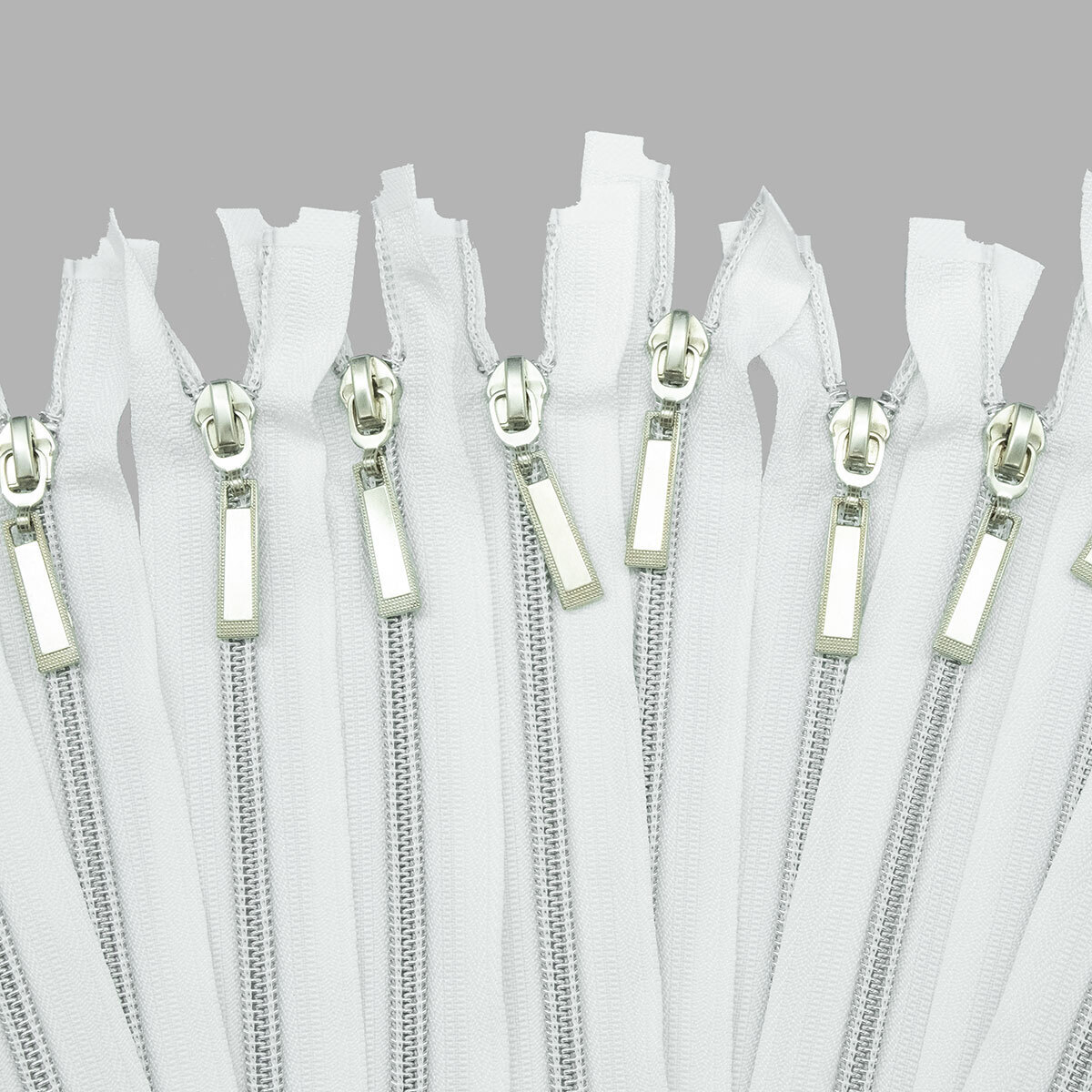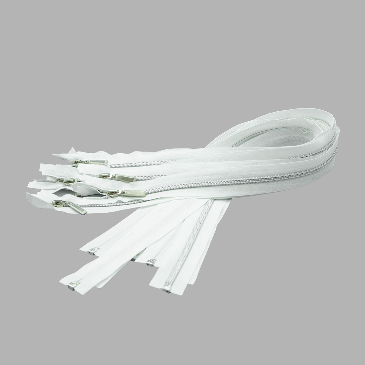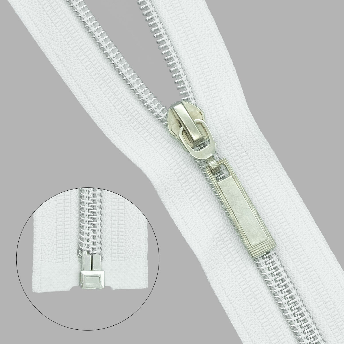 Молния спираль (витая) Т7 (7 мм) 1 зам., разъем., 60 см, никель / белый, 10 шт