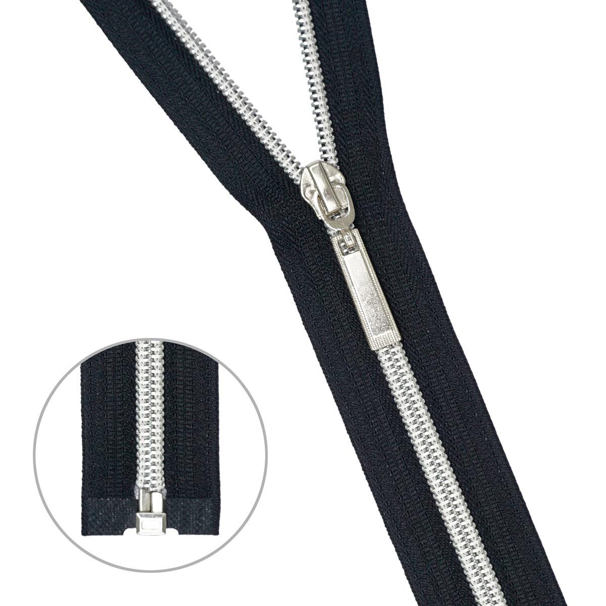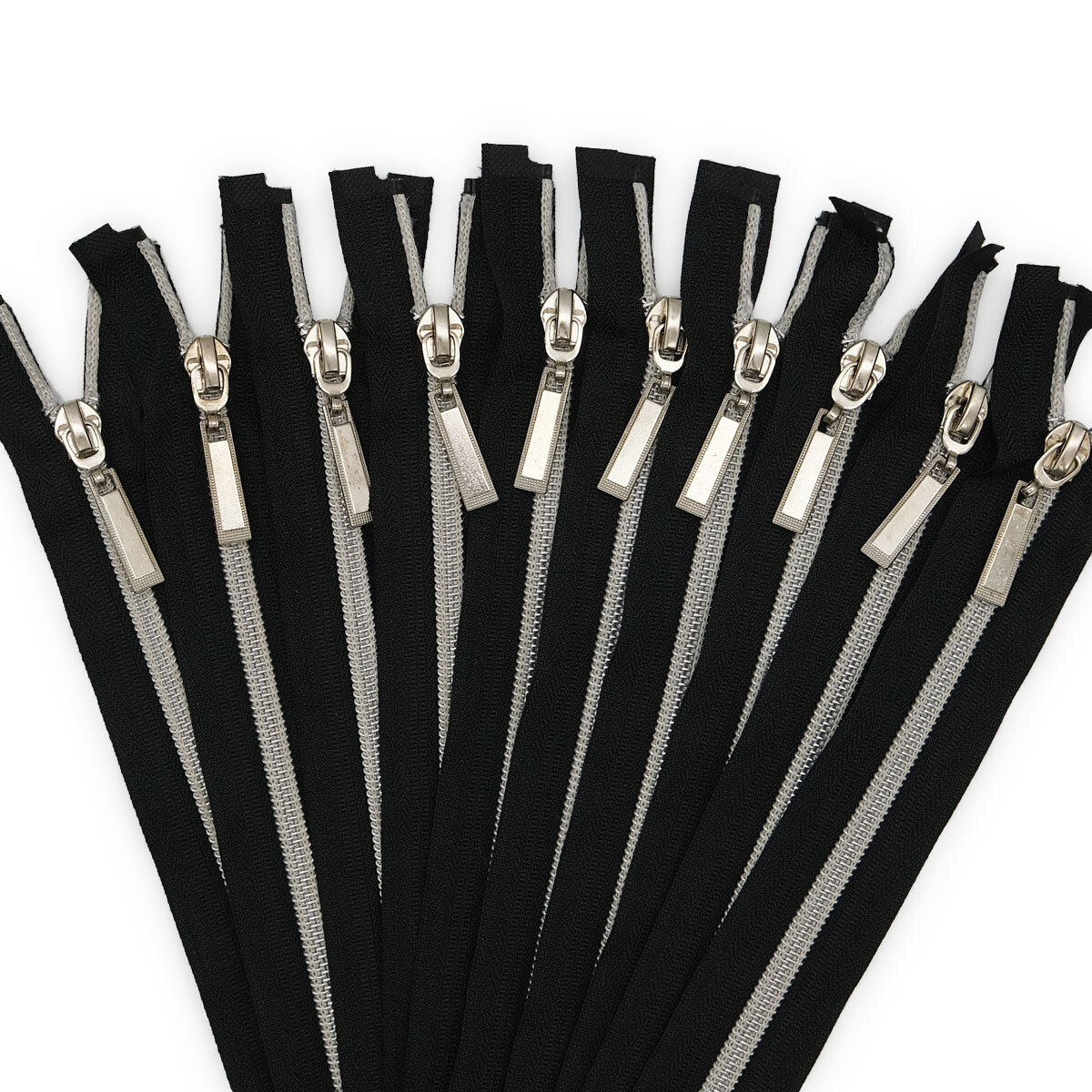 Молния спираль (витая) Т7 (7 мм) 1 зам., разъем., 75 см, никель / черный, 10 шт