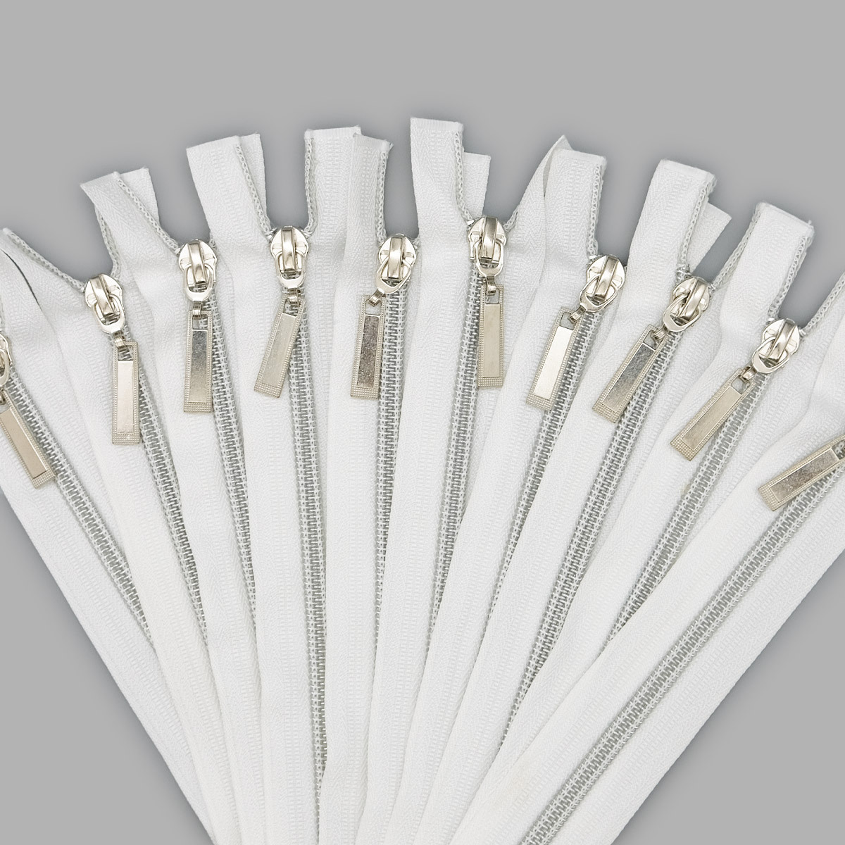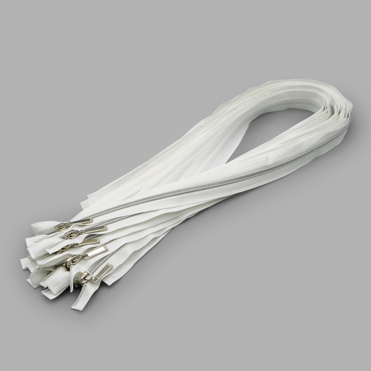 Молния спираль (витая) Т7 (7 мм) 2 зам., разъем., 90 см, никель / белый, 10 шт