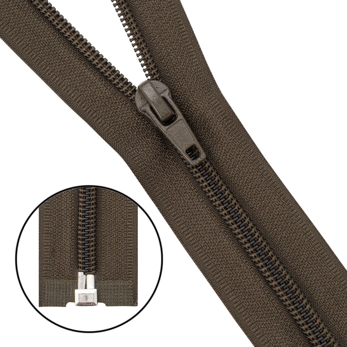 Молния спираль (витая) Т5 (5 мм) 1 зам., разъем., 60 см, 078 хаки, 10 шт