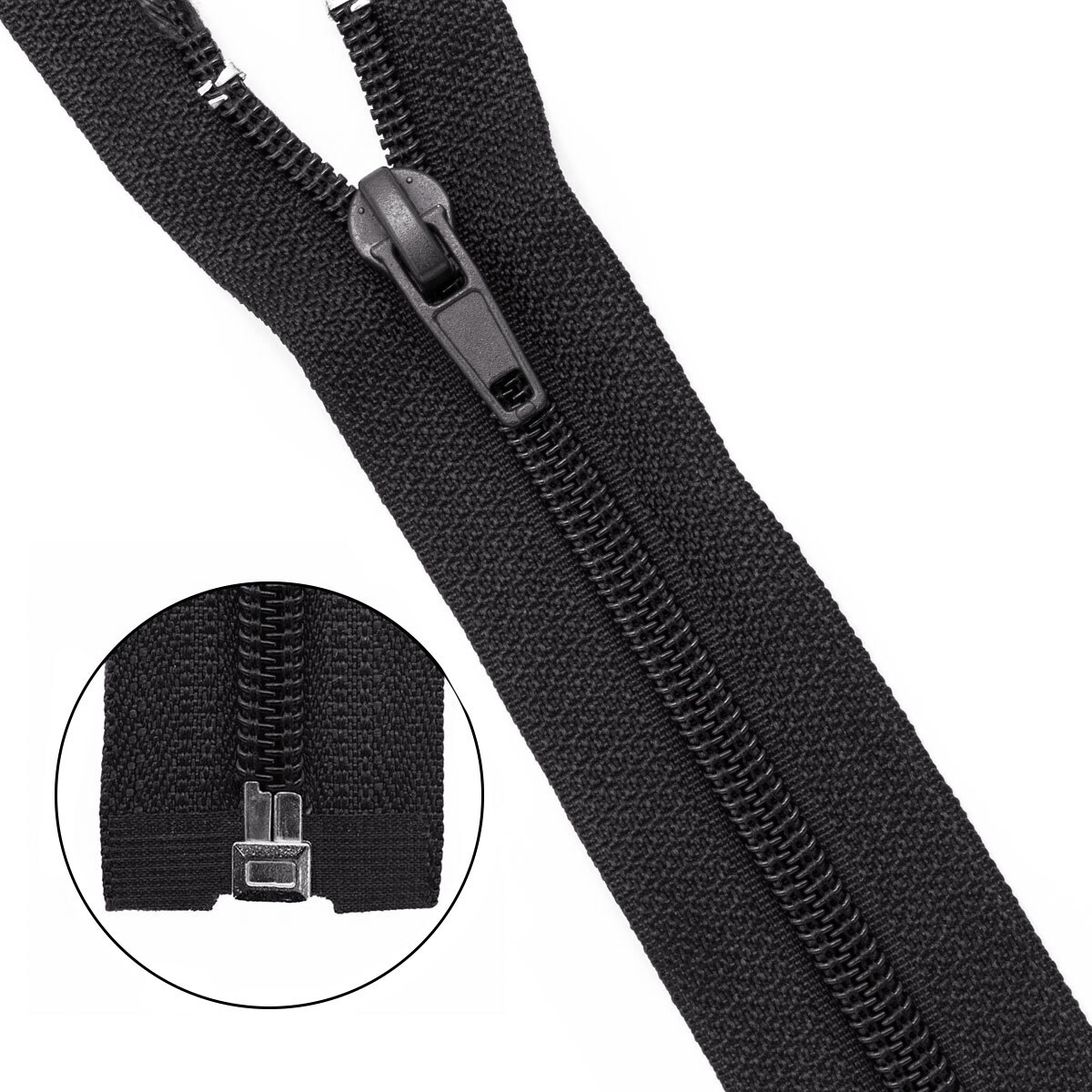 Молния витая разъемная с одним замком. Используется в швейной промышленности при изготовлении одежды для взрослых и детей, постельного белья, сумок, декоративных наволочек, различных аксессуаров. Молния выполнена из материалов высокого качества. Текстильная лента из полиэстера прошла противоусадочную обработку, не линяет при стирке и химической чистке. Звенья у витой молнии пластиковые, поэтому застежка имеет небольшой вес и подходит для легких тканей. Металлический слайдер свободно скользит по текстильной ленте. Цвет звеньев и текстильной ленты молнии совпадают, что делает ее незаметной на изделии.