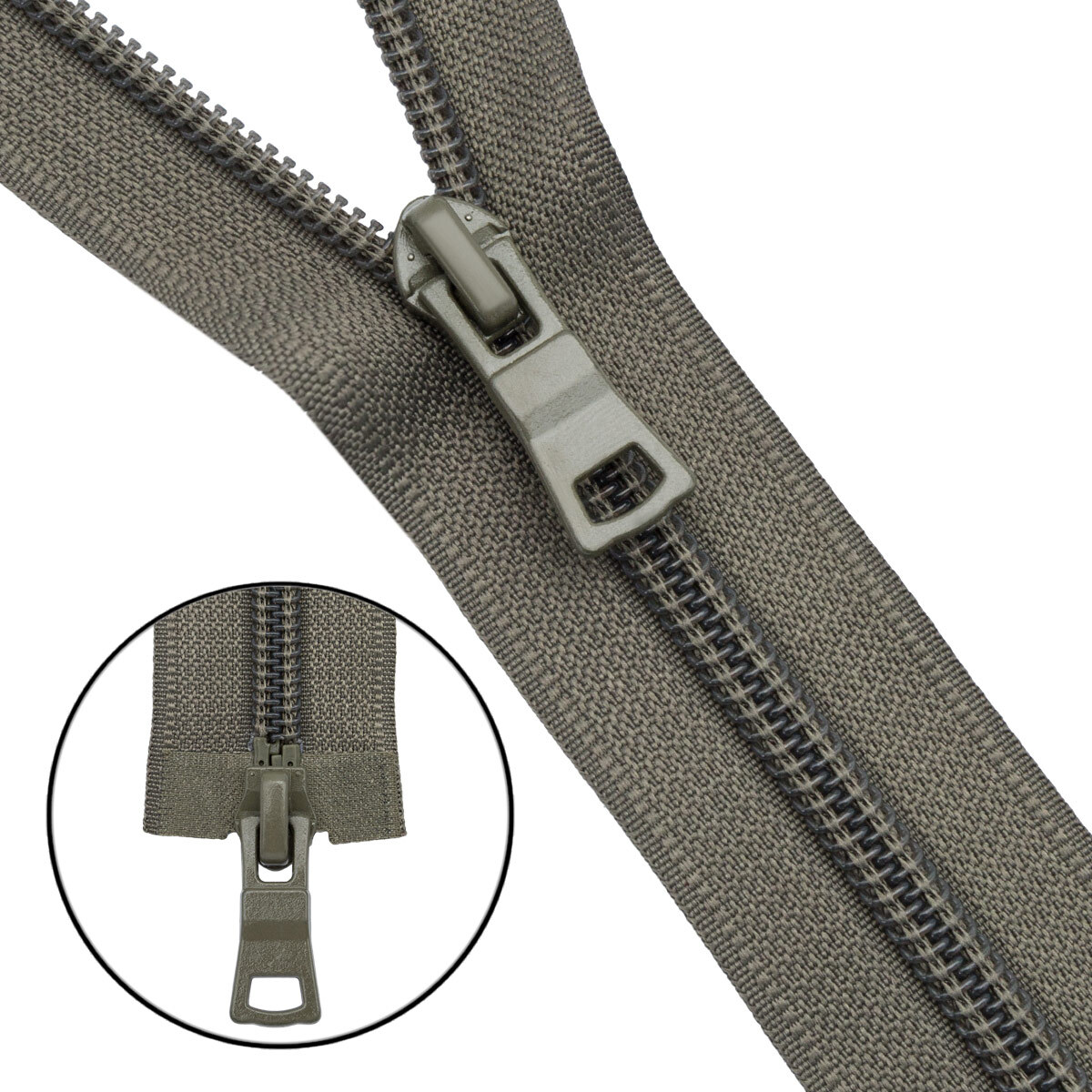 Молния спираль (витая) Т7 (7 мм) 2 зам., разъем., 100 см, 282 хаки, 10 шт