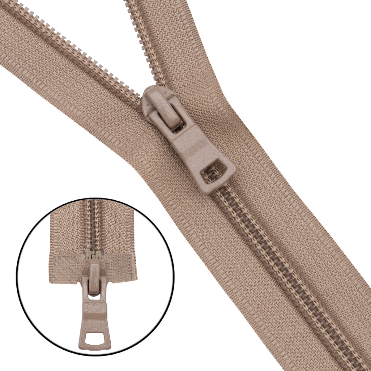 Молния спираль (витая) Т7 (7 мм) 2 зам., разъем., 75 см, 128 бежево-серый, 10 шт