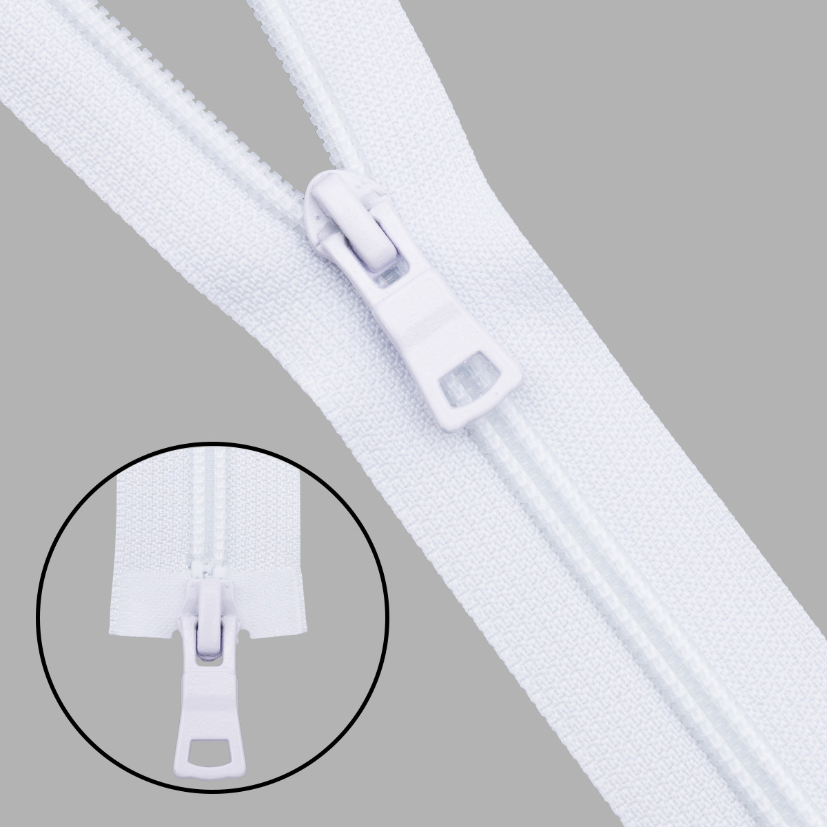 Молния спираль (витая) Т7 (7 мм) 2 зам., разъем., 80 см, 501 белый, 10 шт