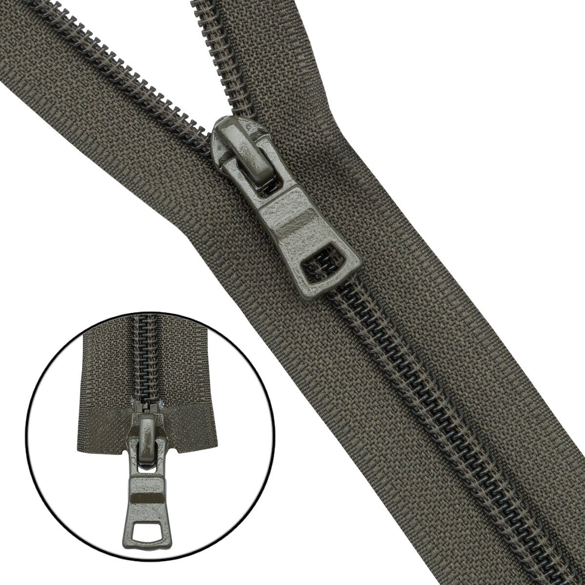 Молния спираль (витая) Т7 (7 мм) 2 зам., разъем., 85 см, 078 хаки, 10 шт