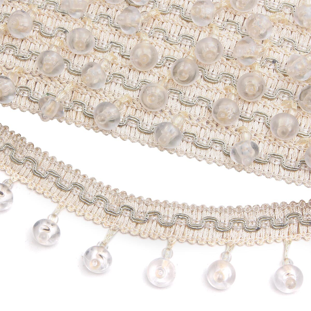 Бахрома отделочная 40.0 мм / 12 метров, со стеклярусом, молочный/crystal