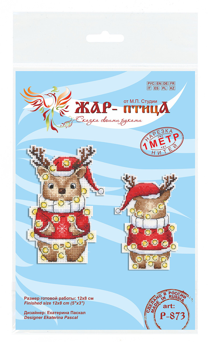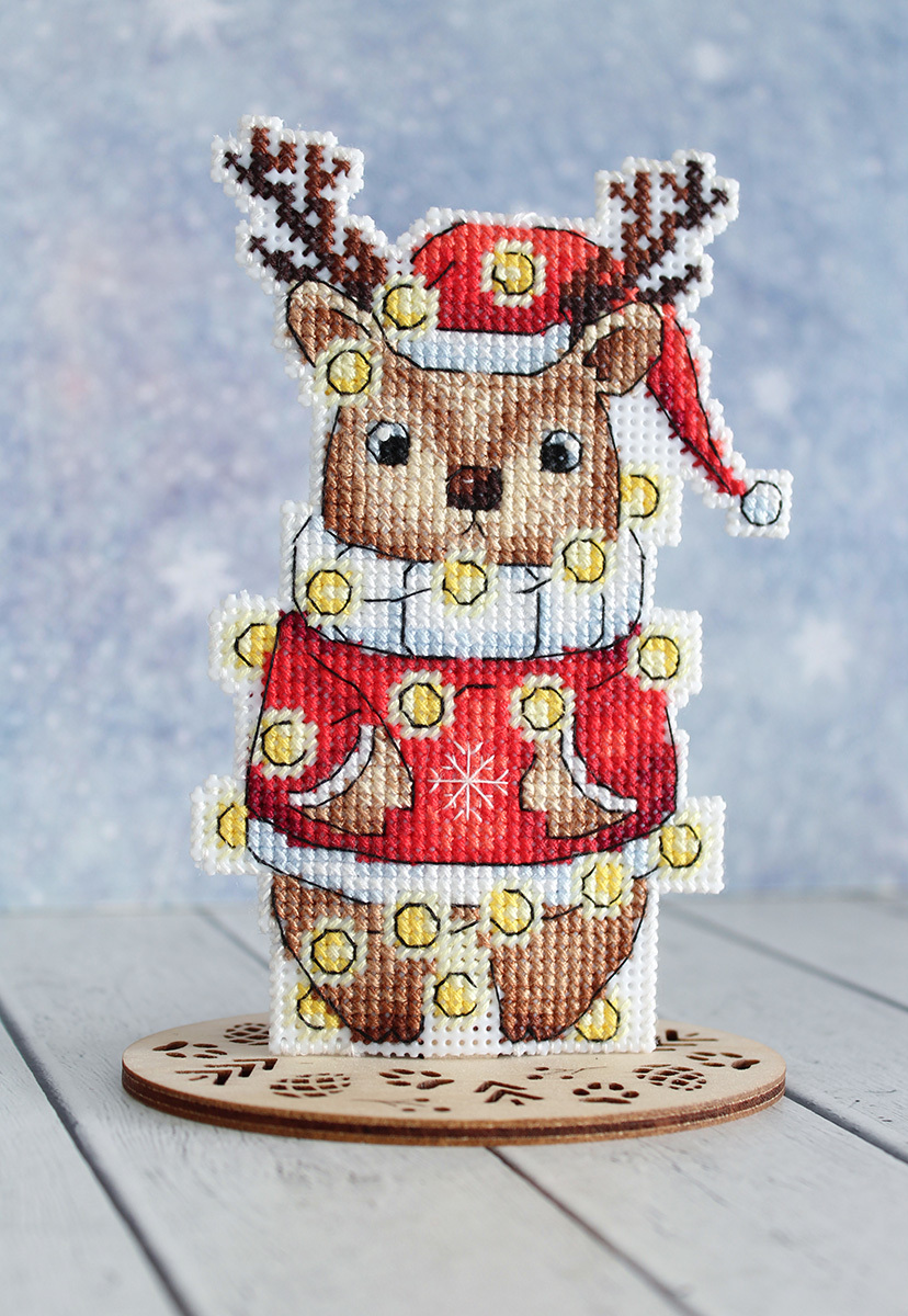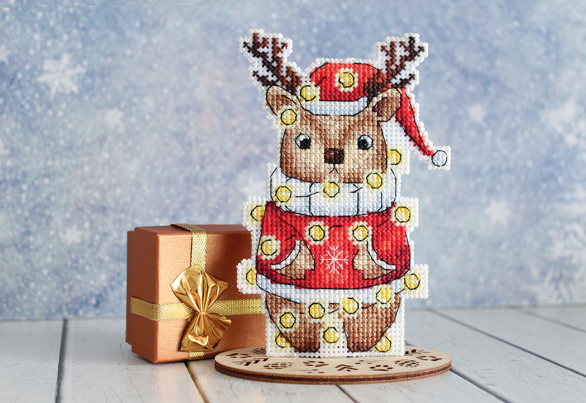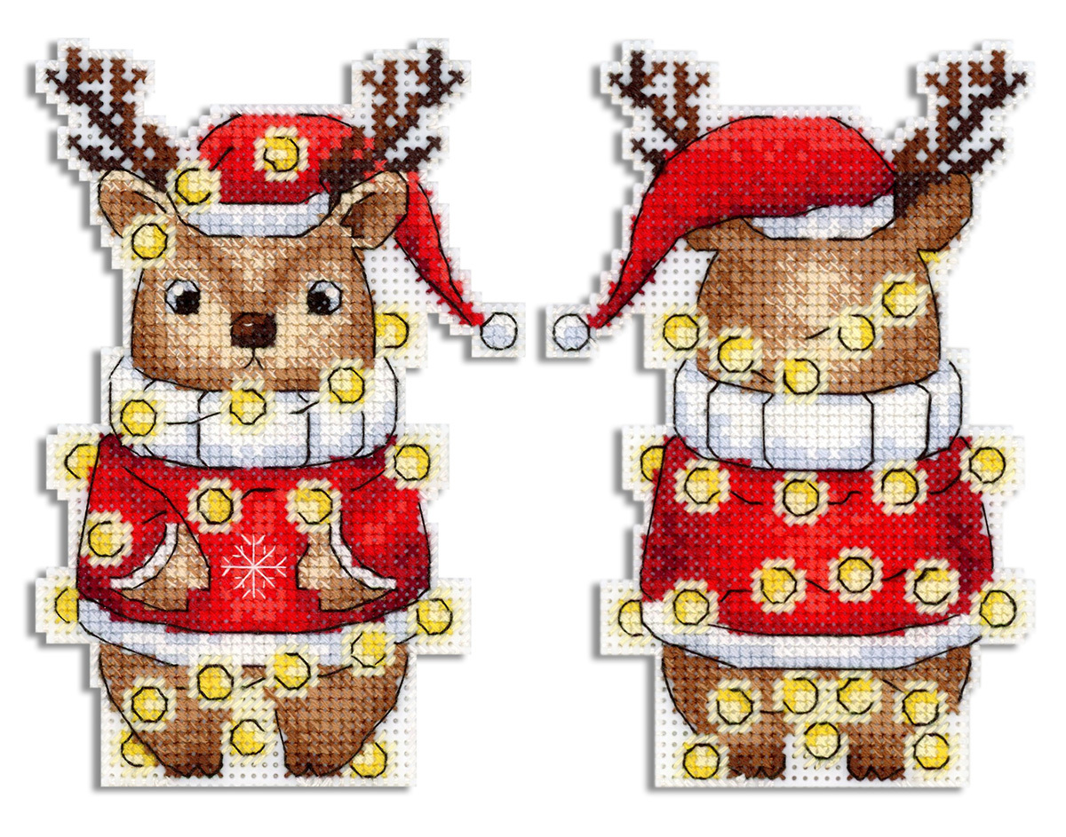Обе стороны оленя вышиваются согласно схеме, затем вырезаются по контуру, обозначенному в руководстве по вышиванию, и сшиваются изнаночными сторонами внутрь.