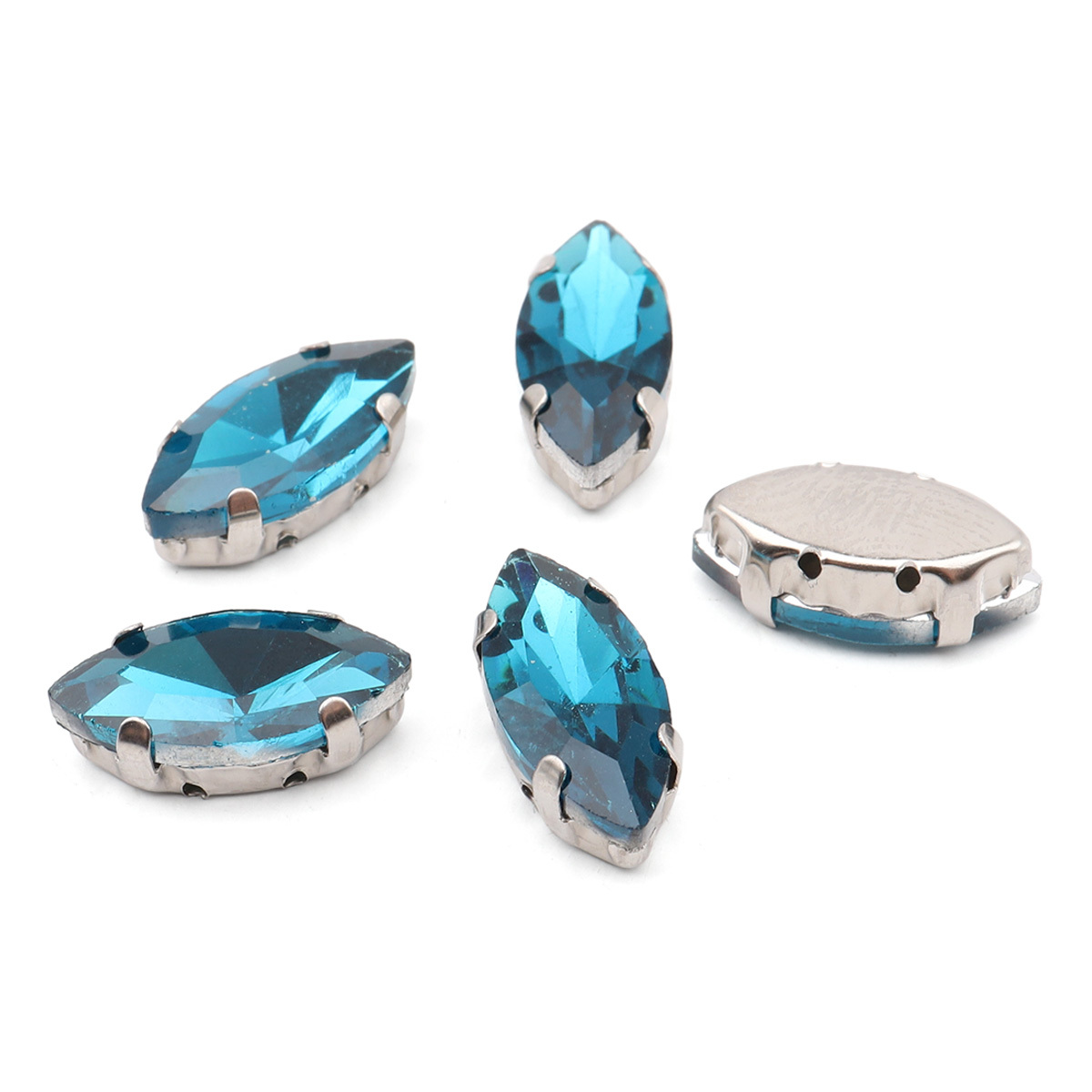 Хрустальные стразы в цапах формы миндаль, лазурный 7х15 мм, 5 шт., МЦ020НН715