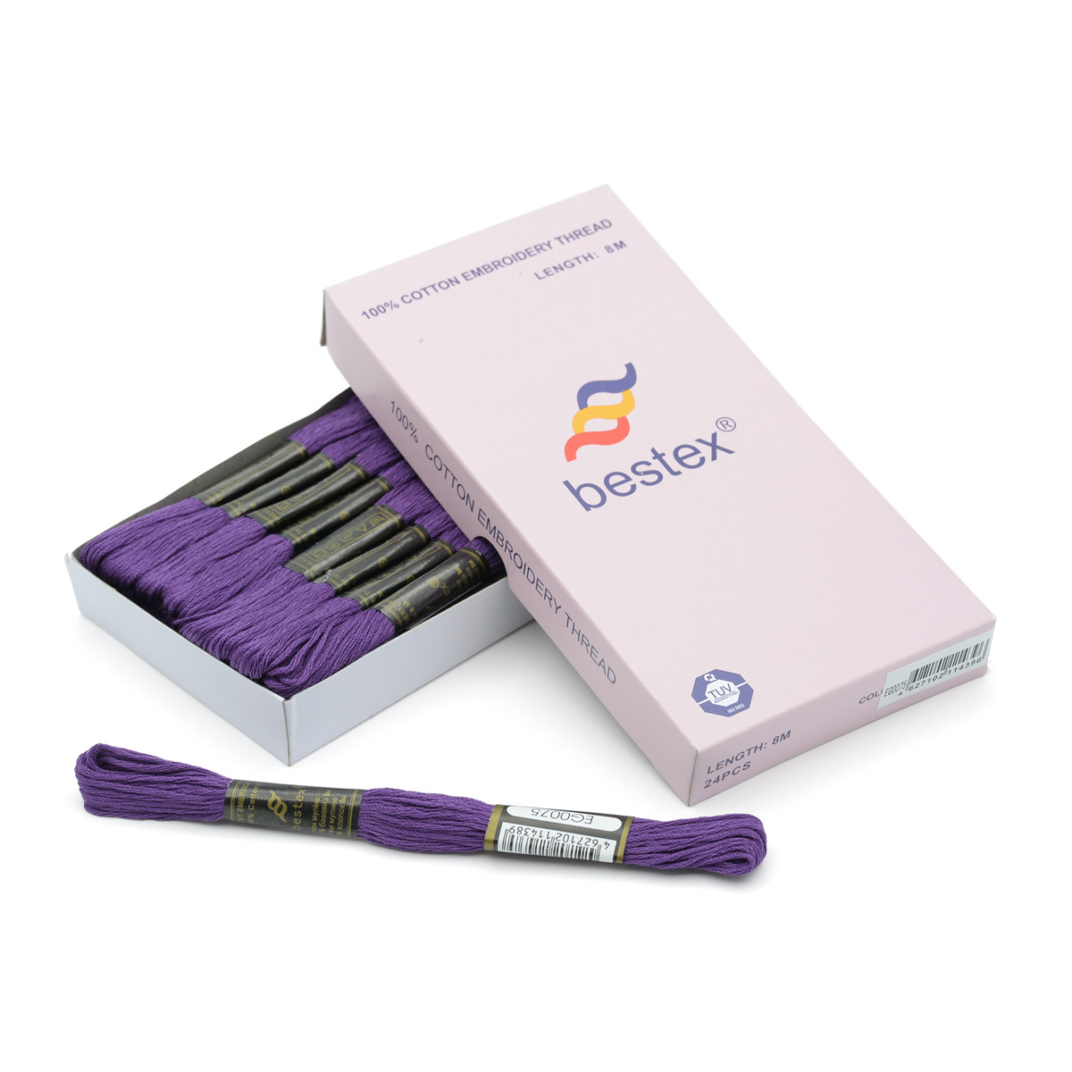 Набор ниток мулине от Bestex подойдет как начинающим, так и опытным мастерицам. Нитки изготовлены из мерсеризованного хлопка, имеют мягкий блеск. Тонкие, износостойкие, равномерные по всей длине. При вышивании образуются аккуратные стежки. Используйте эти мулине, чтобы: – осваивать азы вышивки крестом, гладью и другими техниками; – вышивать буквы, надписи, кайму или орнаменты; – воплощать оригинальные авторские задумки. Каждая пасма состоит из 6 отдельных нитей одинаковой тонины. Благодаря новейшим технологиям нитки яркие, легкие, равномерные по всей длине, без утолщений, разрывов и узелков. Четко выраженная структура нити позволяет использовать мулине для сюжетов со сплошной зашивкой. Вся продукция Bestex имеет экологический сертификат Oeko-Tex. В наборе 24 шт.