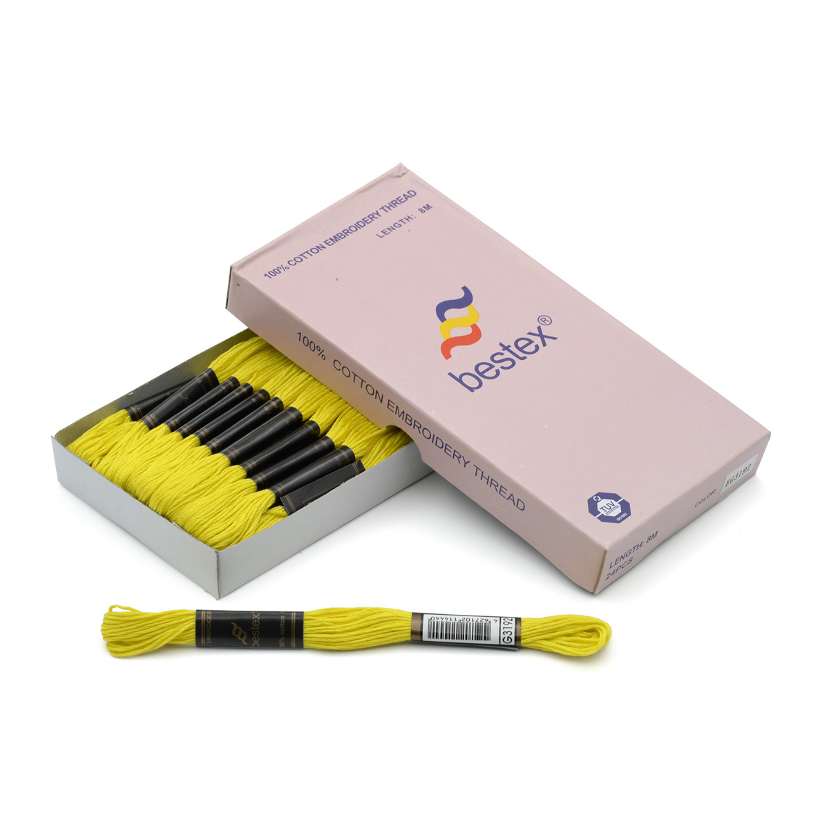 Набор ниток мулине от Bestex подойдет как начинающим, так и опытным мастерицам. Нитки изготовлены из мерсеризованного хлопка, имеют мягкий блеск. Тонкие, износостойкие, равномерные по всей длине. При вышивании образуются аккуратные стежки. Используйте эти мулине, чтобы: – осваивать азы вышивки крестом, гладью и другими техниками; – вышивать буквы, надписи, кайму или орнаменты; – воплощать оригинальные авторские задумки. Каждая пасма состоит из 6 отдельных нитей одинаковой тонины. Благодаря новейшим технологиям нитки яркие, легкие, равномерные по всей длине, без утолщений, разрывов и узелков. Четко выраженная структура нити позволяет использовать мулине для сюжетов со сплошной зашивкой. Вся продукция Bestex имеет экологический сертификат Oeko-Tex. В наборе 24 шт.
