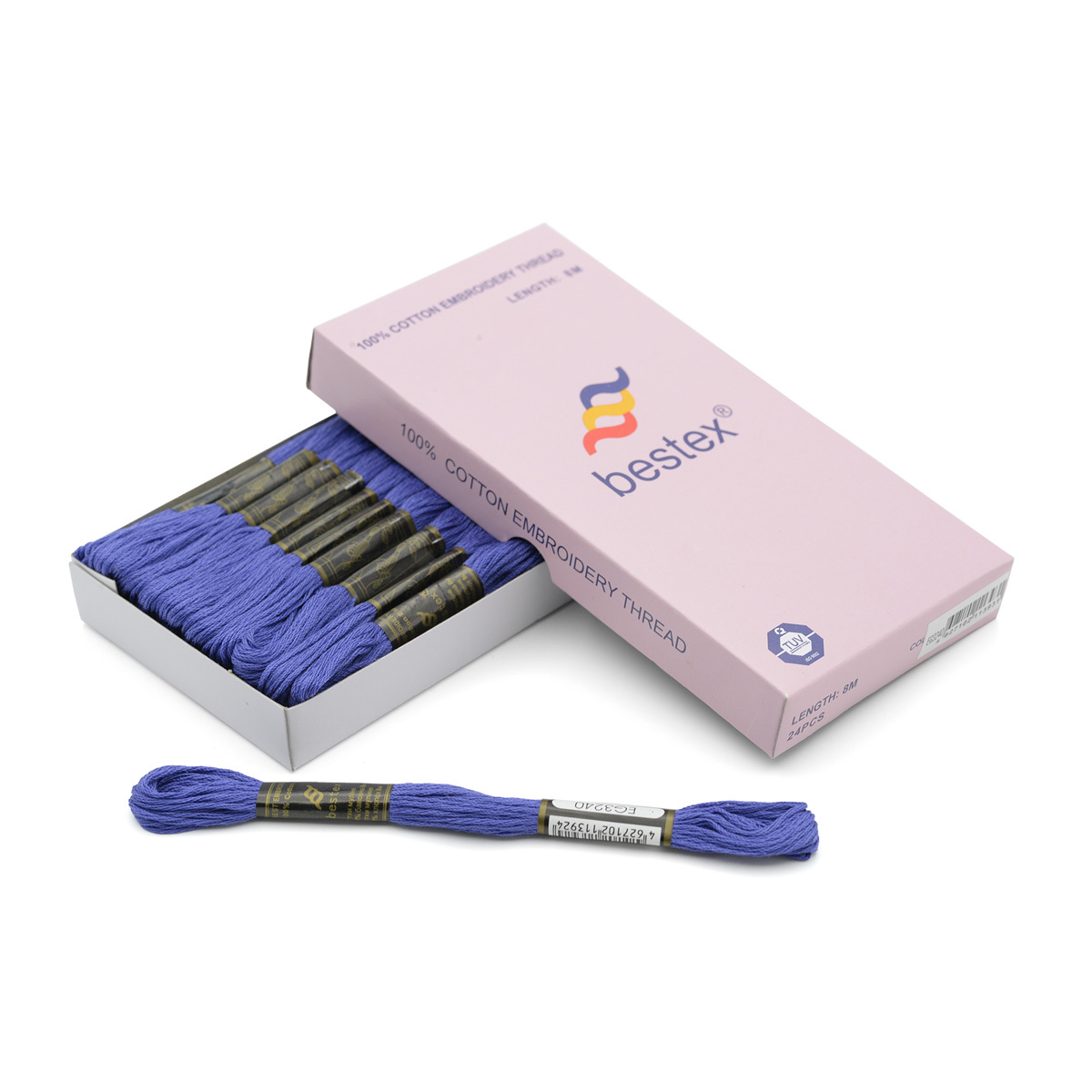 Набор ниток мулине от Bestex подойдет как начинающим, так и опытным мастерицам. Нитки изготовлены из мерсеризованного хлопка, имеют мягкий блеск. Тонкие, износостойкие, равномерные по всей длине. При вышивании образуются аккуратные стежки. Используйте эти мулине, чтобы: – осваивать азы вышивки крестом, гладью и другими техниками; – вышивать буквы, надписи, кайму или орнаменты; – воплощать оригинальные авторские задумки. Каждая пасма состоит из 6 отдельных нитей одинаковой тонины. Благодаря новейшим технологиям нитки яркие, легкие, равномерные по всей длине, без утолщений, разрывов и узелков. Четко выраженная структура нити позволяет использовать мулине для сюжетов со сплошной зашивкой. Вся продукция Bestex имеет экологический сертификат Oeko-Tex. В наборе 24 шт.