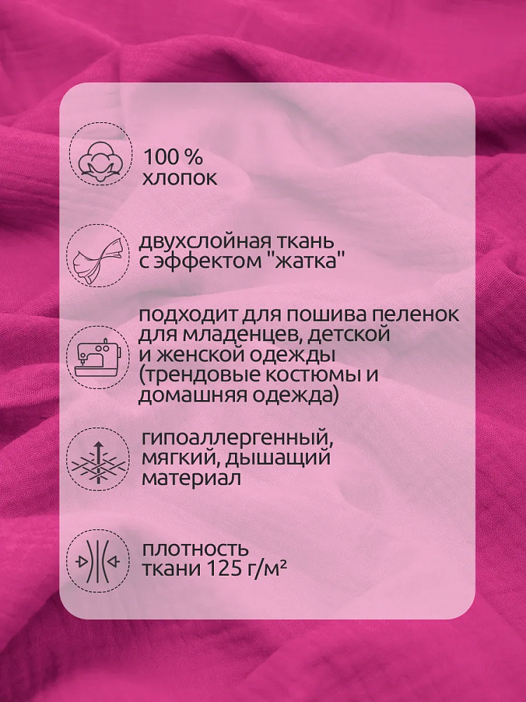 Муслин 125 г/м², 130 см / 25 метров, TBY.Mus.24723.51, цв.51 ярко-розовый