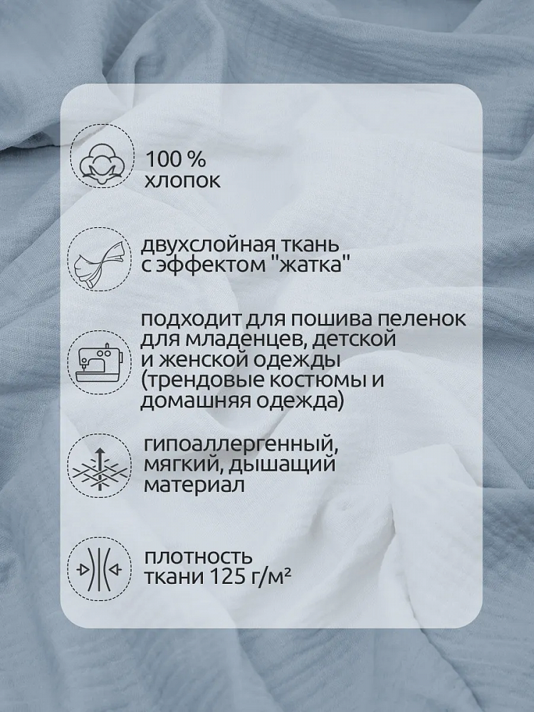 Муслин 125 г/м², 130 см / 25 метров, TBY.Mus.24723.54, цв.54 св.серый