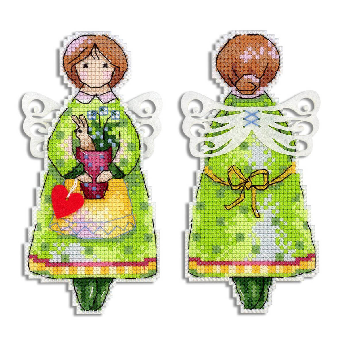 Создайте яркий вышитый сувенир 'Ангел весны' – это увлекательно и просто, достаточно владеть техникой 'крест' и точно следовать инструкции. Пяльцы или рамки не понадобятся – пластиковая канва отлично держит форму. Готовые элементы надо вырезать по контуру и соединить между собой аккуратными стежками. При желании между деталями игрушки можно вклеить или вшить ленту-подвес. В наборе: пластиковая канва, хлопковое мулине ПНК им.Кирова, декоративный элемент из фетра – 2 шт, игла, схема, инструкция. Количество цветов: 23. Размер готового сувенира: 6х13 см.