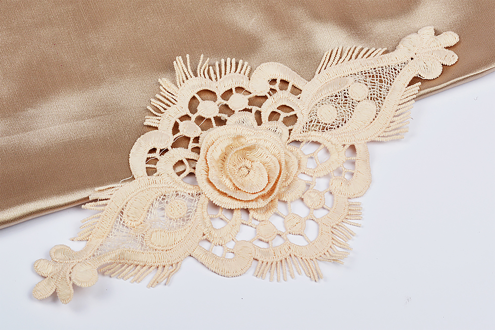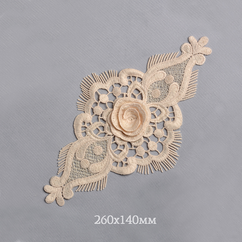 Пришивная кружевная аппликация с цветами матовая нить арт.TY.HTEX.20.1 260х140мм цв.кремовый уп.5 шт, Kruzhevo