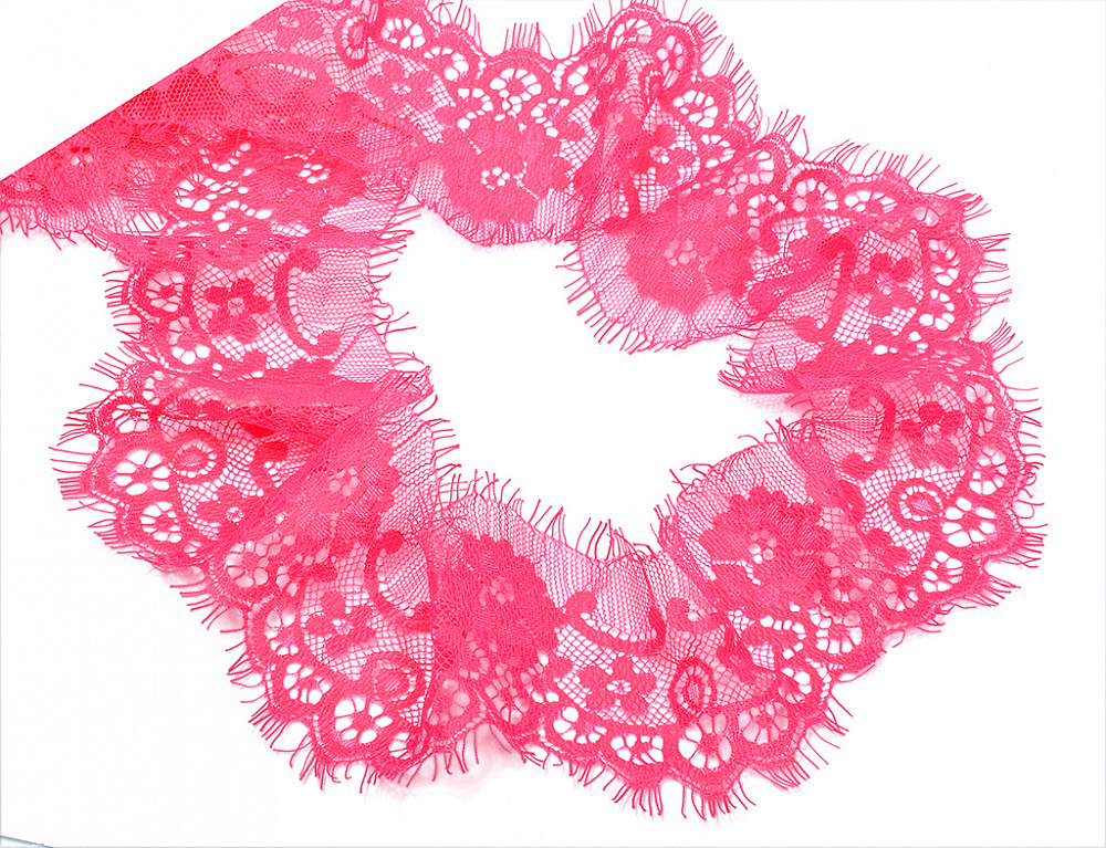 Кружево шантильи (реснички) диз.TY 76006 шир.80мм цв.144 ярк.розовый уп.30м (по 3м), Kruzhevo