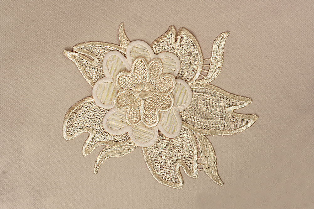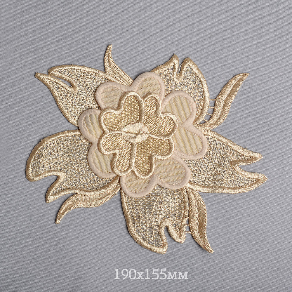 Пришивная кружевная аппликация с цветами арт.TY.HTEX.15.4 190х155мм цв.светлое золото уп.5 шт, Kruzhevo